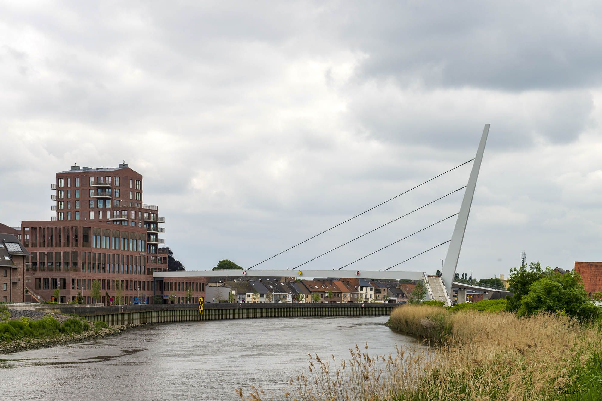 Avec cette nouvelle passerelle cyclo-piétonne sur l’Escaut, Wetteren a gagné un nouveau repère. Il s’agit en effet d’un ouvrage haubané, avec un pylône en acier haut de presque 50 m. L’ouvrage remplace une ancienne passerelle dont la hauteur libre était trop limitée pour le trafic maritime. Depuis quelque temps déjà, l’Escaut est approfondi à plusieurs endroits pour le rendre navigable par des péniches de plus fort tonnage. Des berges sont également déplacées, des quais reconstruits et des ponts rehaussés. C’est dans ce contexte qu’il faut situer la nouvelle passerelle pour cyclistes et piétons à Wetteren.