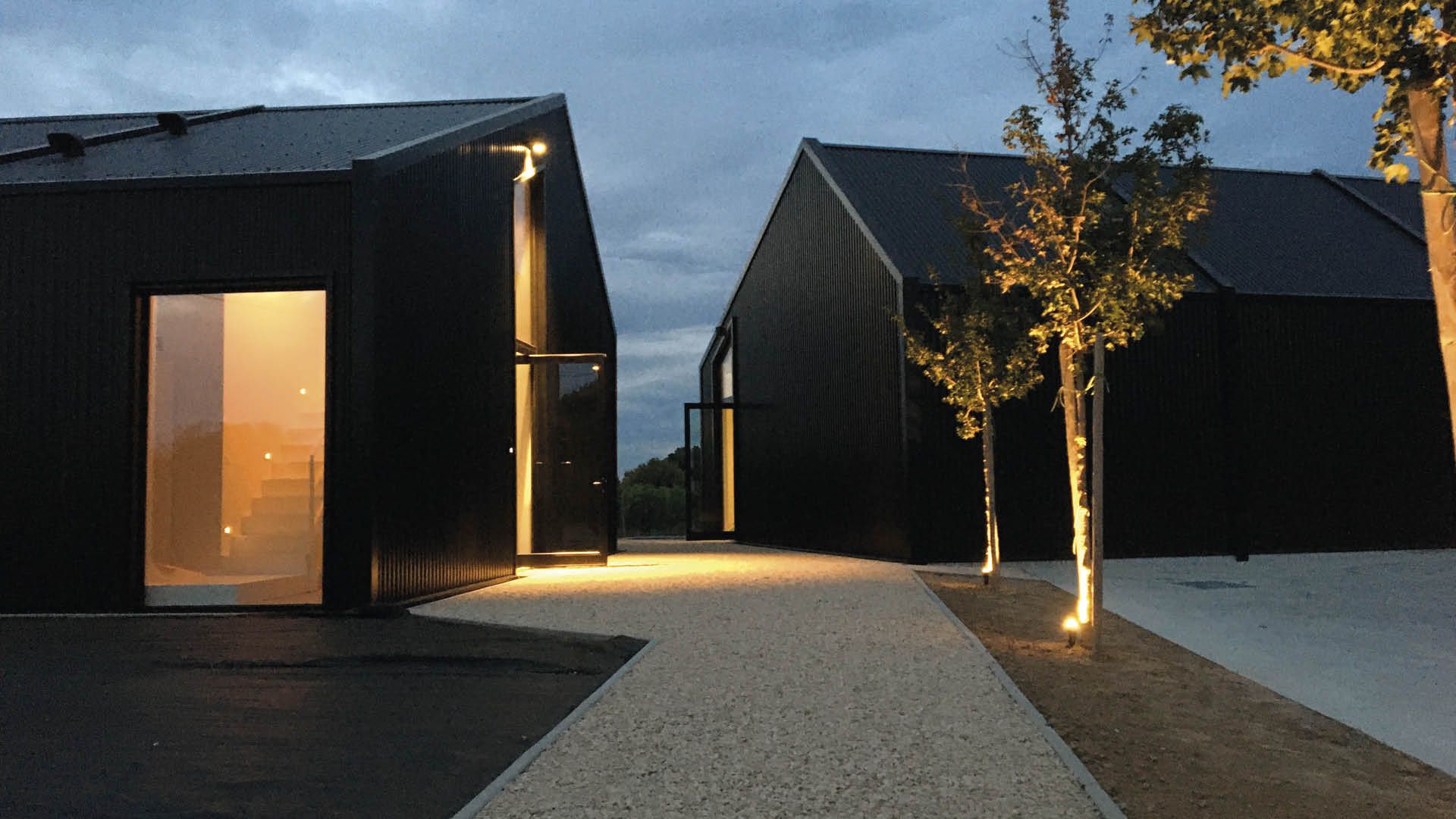 Le choix de l’acier a permis de tirer parti du caractère agricole du site et de les mettre en harmonie avec le hangar existant. De plus, l’acier permet d’associer une fonctionnalité optimale à un langage de conception contemporain qui peut être à la fois simple, robuste, plein de caractère et élégant. Cela s’exprime dans deux volumes noirs épurés avec un profil de toit asymétrique entièrement recouvert - toit et façade - de tôle d’acier avec des nervures verticales (SAB 19/1050).