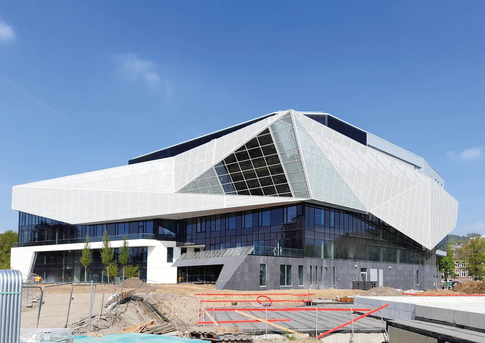 Construit à l’initiative de la Province de Liège, le « Pôle des Savoirs » peut se décrire comme un complexe multifonctions, rassemblant culture, innovation et espaces de rencontre. Le bâtiment de 5 étages se distingue par son impressionnante façade double-peau de 3100m2, alliant zinc et en verre, ainsi que par le porte-à-faux général de l’aile comprenant la bibliothèque.