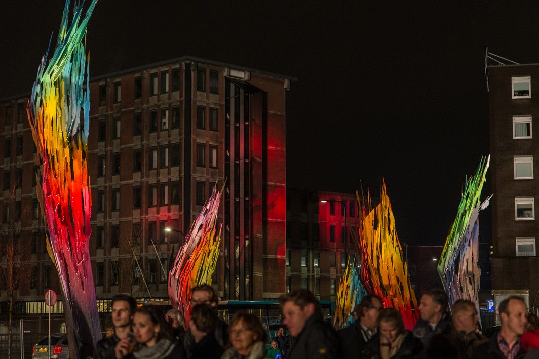 La nouvelle œuvre d’art publique de Arne Quinze, appelée ‘Whispers’ (murmures), est composée d’une série de 20 sculptures en acier S355. ‘Whispers’ fait partie de la rénovation de la Koningsplein, une place piétonne de la ville d’Enschede, et se veut un symbole de la lutte pour davantage de nature au cœur de nos villes. L’œuvre matérialise en quelque sorte les premières pousses de cette victoire.