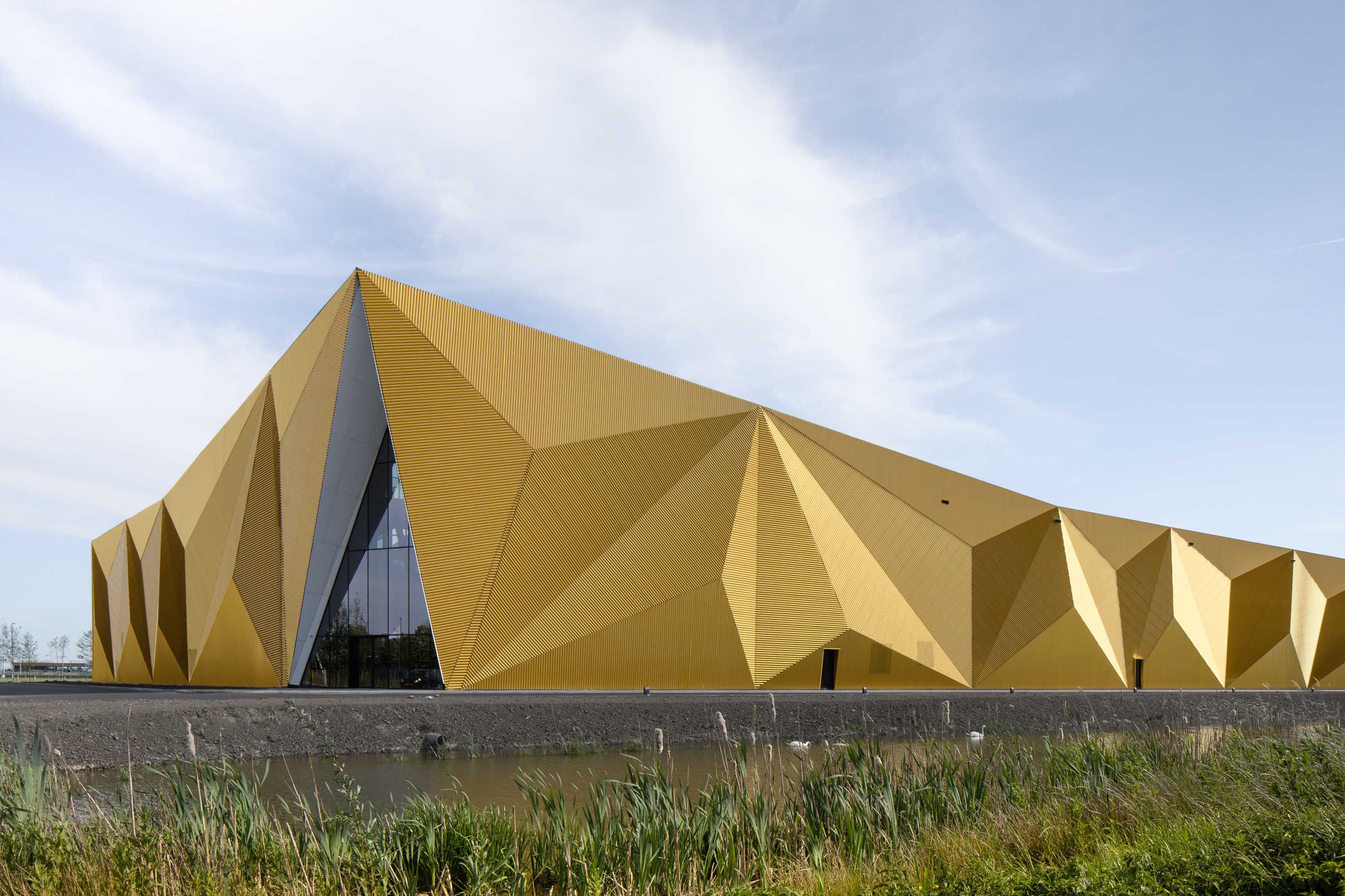À Houten, une ville voisine d’Utrecht (Pays-Bas), la Monnaie royale des Pays-Bas a fait construire son nouveau quartier général : ‘The Dutch Vault’. Ce bâtiment iconique se démarque radicalement par sa façade dorée. Une belle réalisation architecturale née de l’interaction fascinante entre profils métalliques dentelés, dont le côté tridimensionnel et les nuances dynamiques créent une illusion d’optique unique.