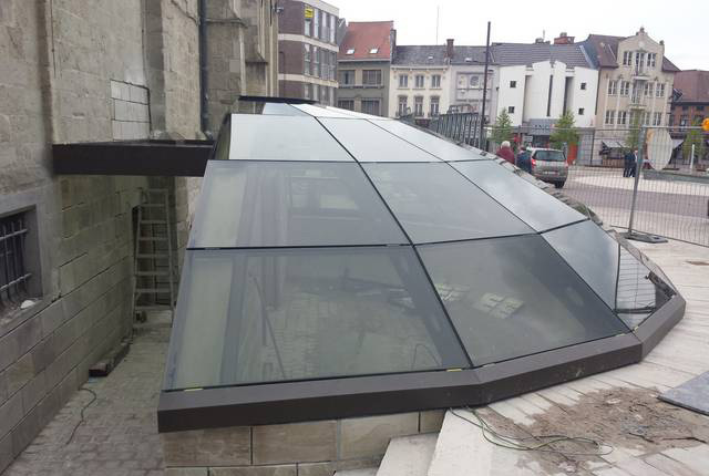 Auvent d’entrée et cage d’ascenseur de l’Hôpital Maria Middelares
