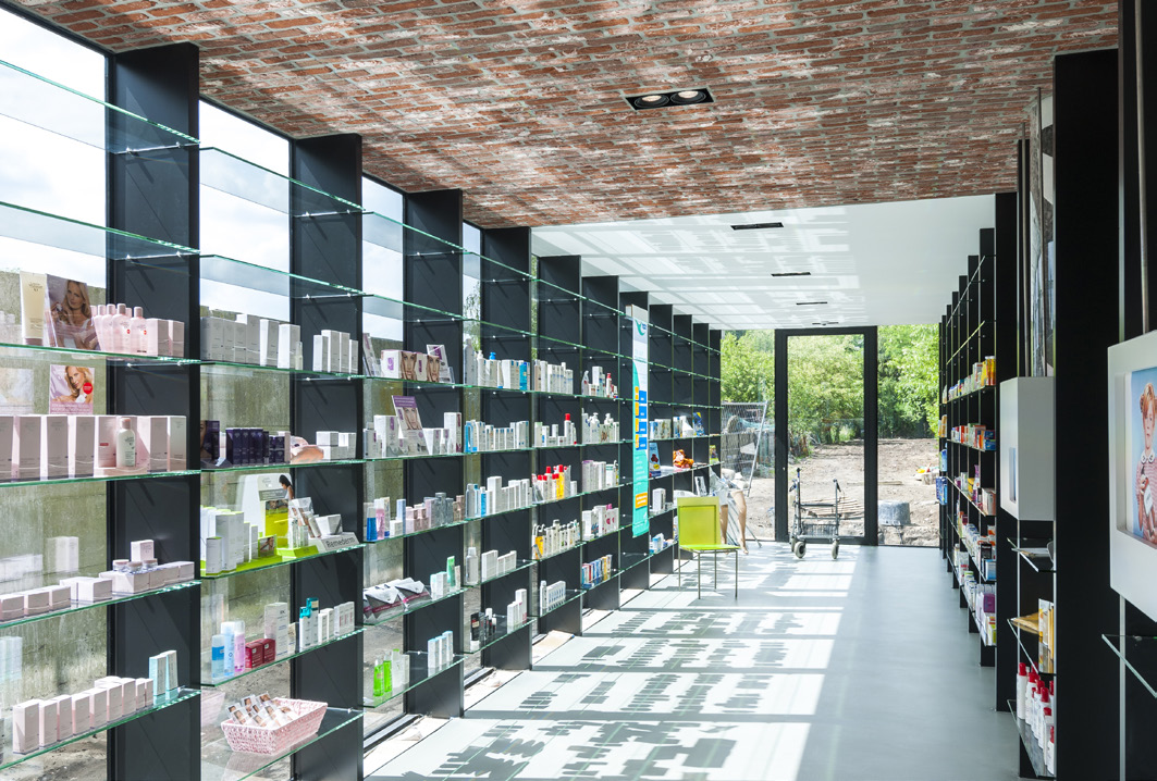 Pharmacie avec profils de fenêtres en acier sur mesure