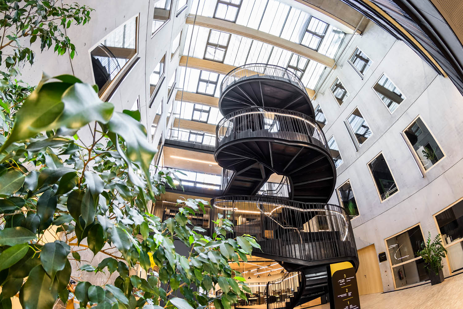Escalier hélicoïdal en acier auto-patinable à l'ilôt Madeleine
