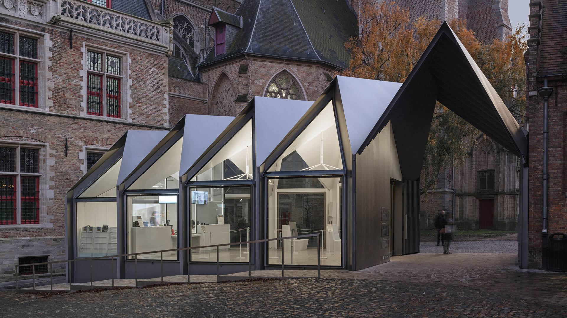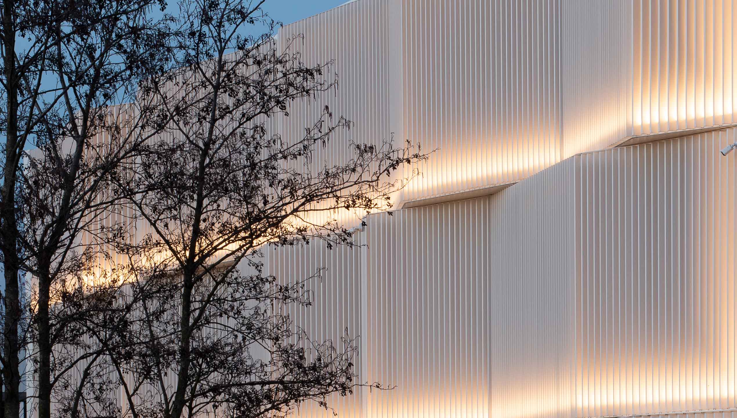 Een bioklimatisch glasdak opgebouwd uit boogspanten
