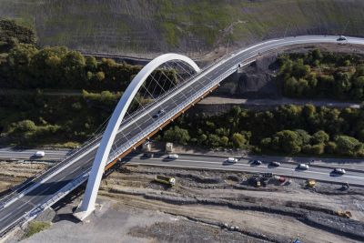 Tekst: <p>Tussen Brynmawr en Gilwern in Zuid-Wales kwam over de Clydachkloof en de A465 een brug met een bijzondere architectonische vormgeving. De boogbrug torent maar liefst 50 m boven het landschap uit. De staalconstructie, goed voor zo’n 1.000 ton, werd in ons land geprefabriceerd.<br>