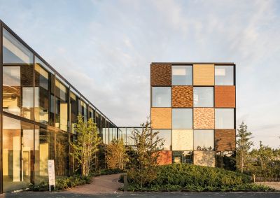 Voor de complete heraanleg van de omgeving en het nieuwe hoofdkwartier van Steenbakkerij Vande Moortel langs de oevers van de Schelde in Oudenaarde kozen architect en opdrachtgever voor een pure, rechthoekige vorm, refererend aan een baksteen of kleiklinker.