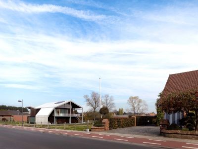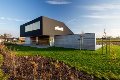 Tekst: <p>L’intérieur de la maison passive à Sint-Pieters-Leeuw est construit autour d’une séquence en spirale d’espaces qui constituent un paysage interne. La promenade passe à travers des zones plus ouvertes vers des endroits plus intimes offrant ainsi chaque fois de variantes relations, entre elles-mêmes et avec le paysage environnant.</p><p>La structure portante au-dessus du sol a été exécutée en profilés d’acier galvanisé visibles. Ces portiques portent les étages supérieurs suspendus, ce qui donne une grande liberté de conception au niveau de vie. Le squelette en acier a été totalement détaché de la peau. Les panneaux en sandwich de la construction industrielle font office d’isolation. Ils assurent un montage facile et rapide, malgré leur épaisseur de 20 cm.</p><p>Le concept osé sur le plan structurel et les techniques de construction industrielle n’empêchent pas qu’un espace intérieur tactile a pu voir le jour grâce aux matériaux naturels.</p>