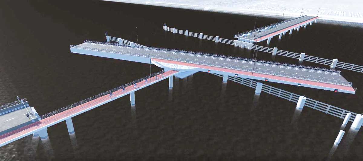 Deze nieuwe brug over het Verbindingsdok realiseert een extra Noord-Zuid toegangsweg voor het wegverkeer in de haven van Zeebrugge. Het is meteen ook de grootste beweegbare brug van Europa : 130 meter lang. Het stalen brugdek bestaat uit zware samengelaste hoofdliggers, gekoppeld met dwarsdragers en een orthotroop wegdek.