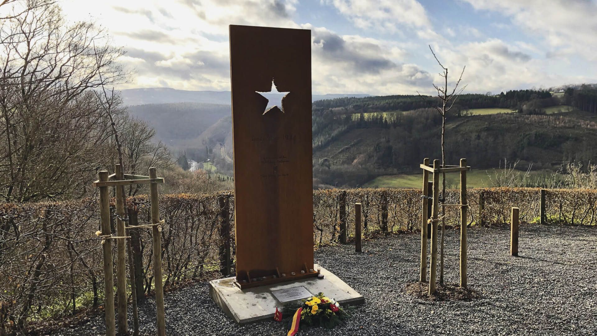 Ce monument en acier auto-patinable de 1300 kg a été érigé à Stoumont à l’occasion du 75e anniversaire de la bataille des Ardennes.