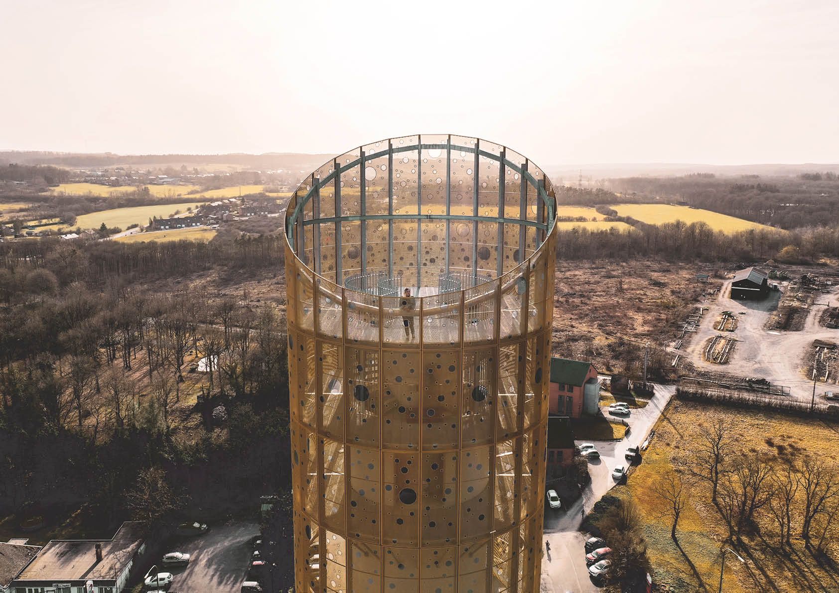 La coiffe est composée de 2 parties distinctes : la structure de bardage et les planchers, en acier galvanisé S235JR, et les bardages eux-mêmes, composés de 21 différents modèles de cassettes en tôles d’aluminium perforées EN AW 5005. Ces derniers fonctionnent à la fois comme une double peau, ce qui offre une transparence générale, ainsi que comme garde-corps, une mesure de sécurité nécessaire.