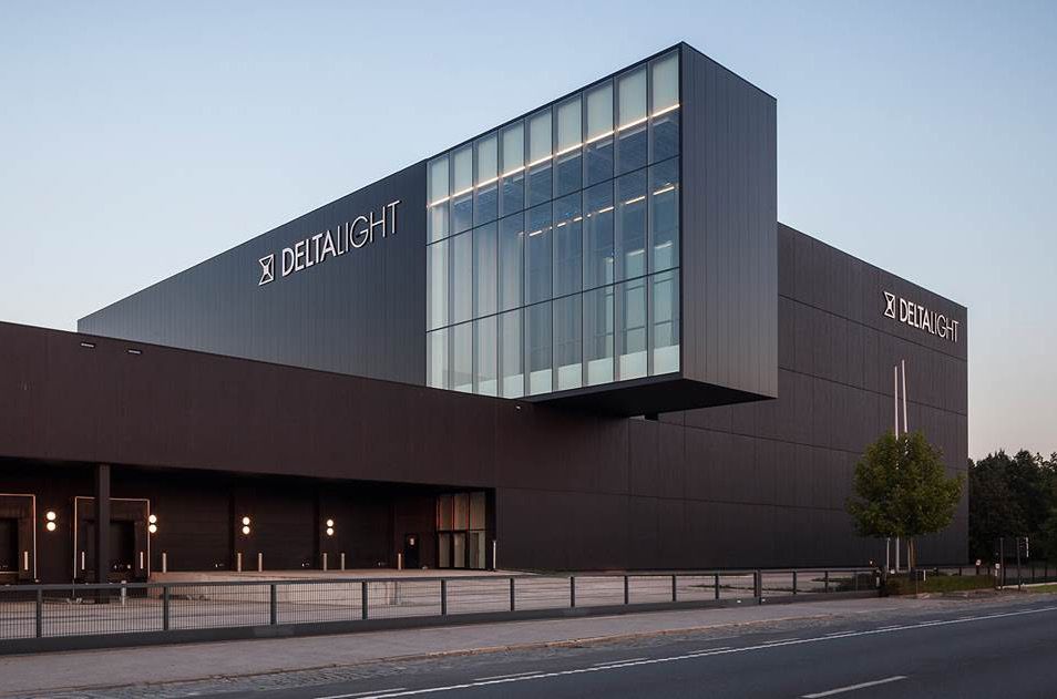 Pour l’extension de son magasin existant, Delta Light, le spécialiste de l’éclairage, a opté pour un entrepôt entièrement automatique de 25 mètres de haut. L’accroche ici est la partie flottante de 10,5 x 8,5 m de l’espace polyvalent, avec une hauteur libre sous-jacente de 10 m et une hauteur de corniche de 25 m. Les charpentes en acier dans le plancher et la toiture sont reliées par des gaines en acier élancées qui ont été placées derrière les châssis en acier.