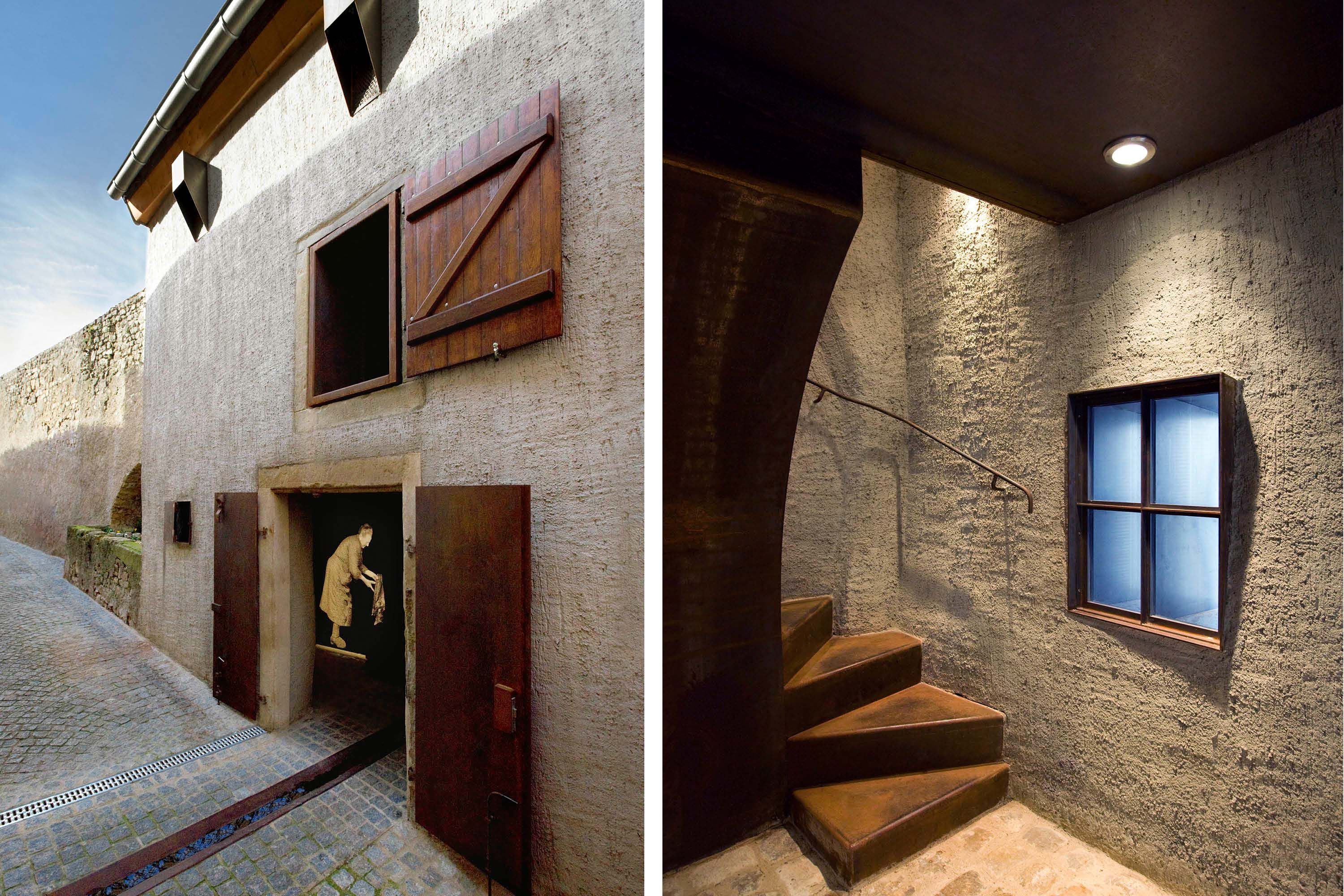 Suite à la décision du syndicat d’initiative et du tourisme de Grevenmacher de remettre en valeur son patrimoine historique, le bureau d’architecture s’est vu confié la réalisation d’un projet original : créer une réplique de l’ancien lavoir «Kundel», qui se trouvait dans une ruelle longeant l’ancienne enceinte de la forteresse de la ville. C’est ainsi qu’à vu le jour ce projet singulier, situé rue de la Tour dans une ancienne petite grange d’à peine 20 m2, entièrement reconstruite dans la tradition mosellane.