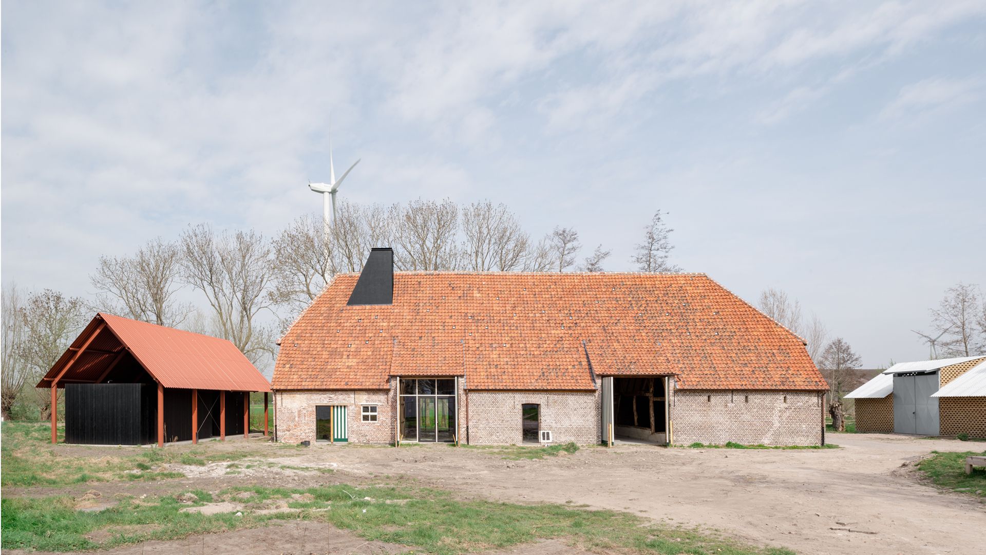 La construction en acier permet de suivre la typologie de la ferme existante, l'utilisation de la couleur réinterprète les éléments patrimoniaux existants. Par exemple, le 'Schuurtje' (le hangar) est une structure ouverte en acier peint en rouge avec deux volumes conditionnés en tant que plomberie. La structure est lisible de l'extérieur et n'est délibérément pas ancrée aux volumes. Dans la 'Keet' (la baraque), la structure en acier n'est lisible que de l'intérieur, un bandeau de briques en claustra assure la circulation de l'air provenant du poêle à copeaux de bois.