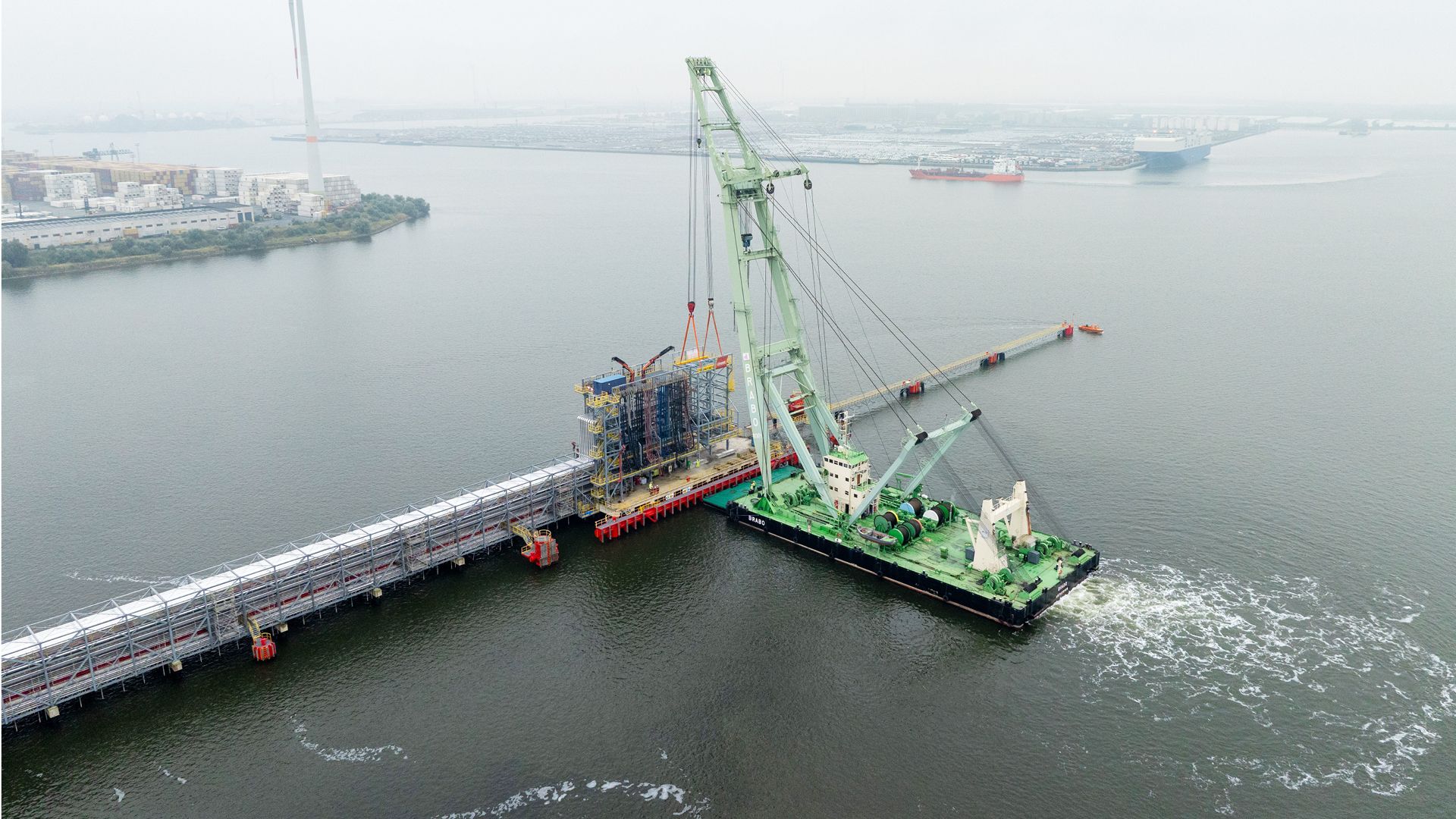 ITC Rubis est responsable du stockage et de la manutention de produits chimiques liquides, de gaz liquéfiés et de produits pétroliers dans le port d'Anvers. Une tour à tuyaux située sur un ponton fixe devait être agrandie. La tour à tuyaux agrandie a une hauteur de 23 m, une largeur de 10 m et un poids d'environ 125 tonnes, dont 90 tonnes d'acier galvanisé.