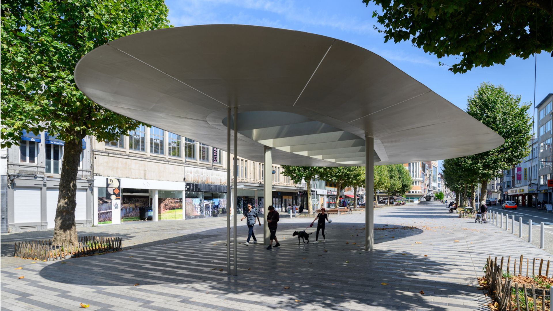 Ce nouvel auvent est le véritable élément de rassemblement au centre de l’une des places principales de la Ville de Verviers. Dans le cadre du projet de réaménagement du centre-ville (Verviers-Ville conviviale), l’intégralité de la place Verte a été repensée de plain-pied, avec pour objectif d’accueillir des événements culturels et des manifestations en tout genre (fêtes foraines, marché de Noël, brocantes, etc.).