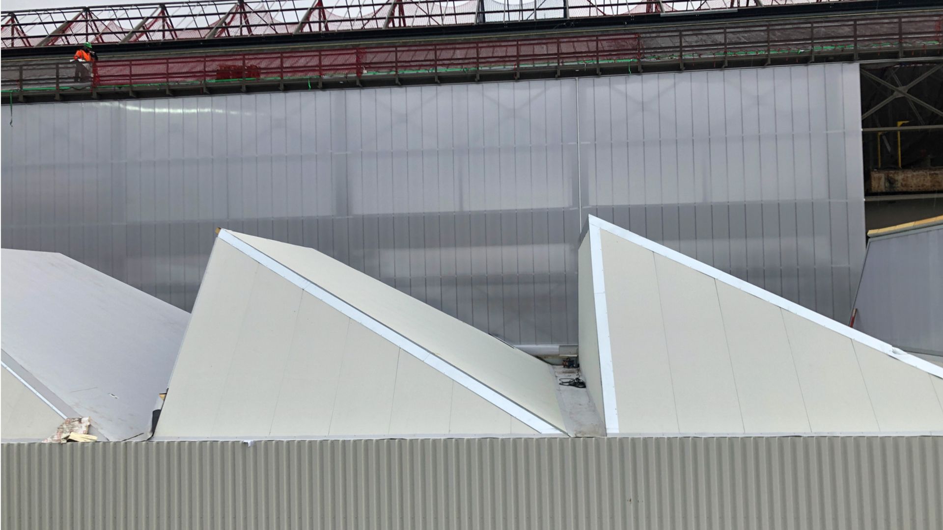 La halle (3300 m²) abrite un grand espace (2100 m²) dédié à des marchés, concerts, … un food-court et des échoppes (1200 m²), un espace de coworking (1750 m²) en mezzanine sur la halle. Le parking paysager (5200 m²) comprend 166 places de parcage et de nombreux emplacements pour les 2 roues. Structurellement, les interventions sur l’existant sont limitées. La halle est habillée de bardage métallique et de panneaux de polycarbonate.