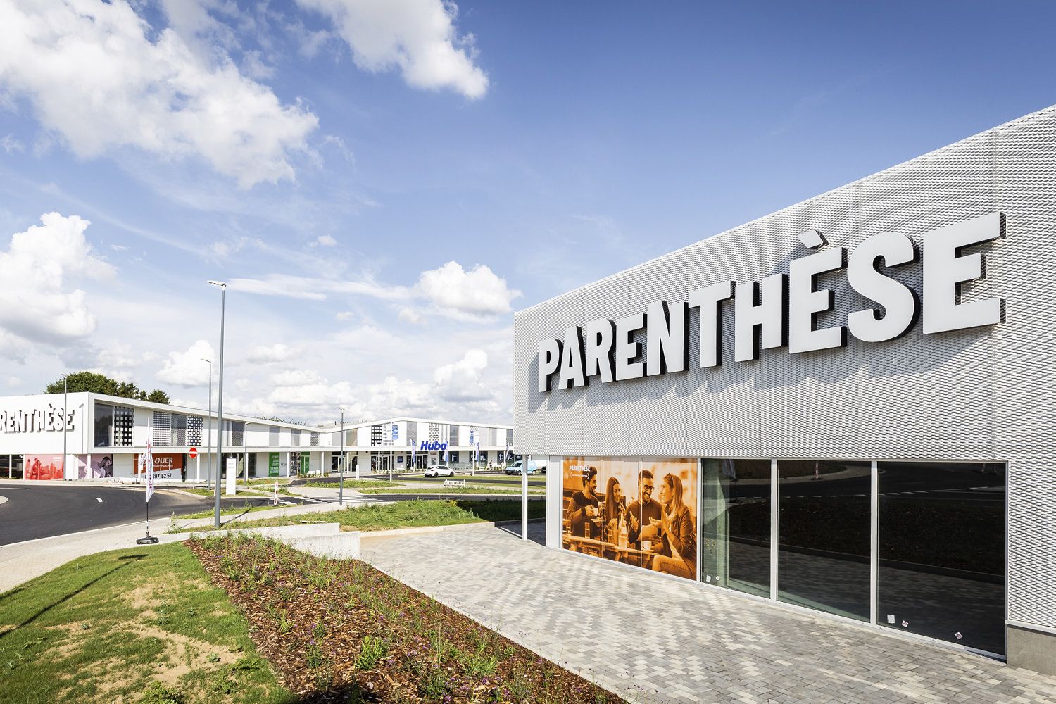 Proposer une architecture originale et ambitieuse pour un projet de centre commercial, tout en offrant un environnement agréable pour les utilisateurs : voilà l’objectif que s’étaient fixés les bureaux OPEN Architectes et DDM Architectes Associés pour le complexe Parenthèse à Gosselies. Ouvert depuis l’été 2020, il séduit par son enveloppe d’acier teint en blanc et de verre, ainsi que par sa disposition avec deux bâtiments en vis-à-vis. Le complexe de 10.000 m2 trouve d’ailleurs son nom dans leur courbure symétrique, qui rappelle les fameux signes de ponctuation.