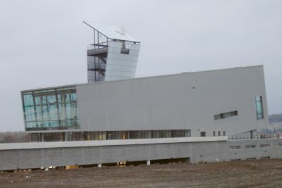 La structure en acier a été construite sur un soubassement massif. Les façades et la couverture de toiture courbe sont revêtues de tôles métalliques profilées, à l’exception d’une partie verticale en cèdre huilé. Les coursives extérieures ont été pourvues de caillebotis en acier galvanisé. Les garde-corps et les couvre-murs sont en acier inoxydable brossé. <br>