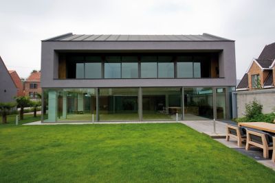 Tekst: <p>L’habitation est constituée de deux volumes imbriqués. La construction en acier a permis de créer des formes nouvelles et au final une belle oeuvre architecturale. Alors que de la rue l’habitation donne une impression de repli sur soi, l’accent est tout au contraire mis sur le côté jardin. La flexibilité des matériaux utilisés, aluminium et acier, a permis de réaliser de nouvelles formes d’habitat. Malgré l’utilisation de ces nouveaux matériaux, les valeurs architecturales élémentaires restent d’application. Ainsi, l’espace n’est pas déterminé par la surface, mais par une mesure dimensionnelle précise, des vides et les principes du duplex. La passerelle non conventionnelle ne réalise pas seulement la liaison entre les chambres, elle est également un lien avec l’espace de vie. La limite de cet espace est réalisée en acier galvanisé. </p>