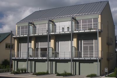 Tekst: <p>Ce projet de 4 unités de logements réparties en 2 immeubles bi-familiaux combine les avantages de l’immeuble à appartements et de la maison mitoyenne de manière à offrir aux occupants un maximum d’espace et d’intimité dans un volume compact. Celui-ci est agrémenté de grandes terrasses reposant sur une structure métallique en acier galvanisé à chaud. Les profilés verticaux, dans l’alignement des mitoyens, supportent les cadres de terrasses. Dans ces cadres sont placées des prédalles formant le coffrage perdu de la dalle de la terrasse. Le choix de l’acier pour la structure s’est imposé pour sa facilité de mise en oeuvre et sa légèreté, en opposition au volume compact de l’édifice et afin de ne pas entraver l’apport de lumière dans le bâtiment.</p>