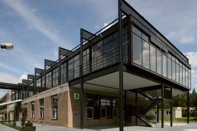 Tekst: <p>À Overijse, un moulin à grains industriel classé a été restauré et agrandi pour devenir un centre administratif. Les trois bâtiments existants ont subi une restauration légère et de nouvelles affectations leur ont été attribuées. L’évolution perceptible de ces bâtiments a impliqué l’utilisation d’un langage formel et de matériel contemporain. L’acier a été utilisé dans le mur-rideau de la façade sud combiné à une structure en avant-plan avec pare-soleil. Le nouveau volume en toiture au-dessus du bâtiment central comporte une structure en acier complétée par un mur-rideau vitré et un toit en steeldeck. Le choix s’est porté sur l’acier, pour sa légèreté, son intégrité, son aspect durable et le peu d’entretien qu’il requiert. De plus, la structure en acier fait partie de l’architecture et un mur-rideau en acier laisse davantage de liberté à la créativité du concepteur.