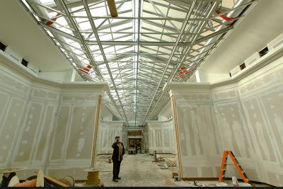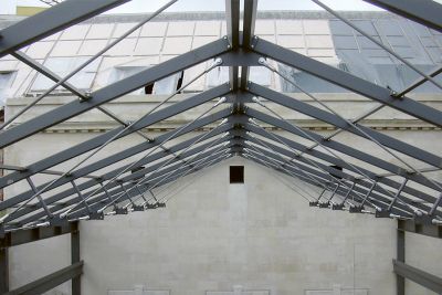La fonction de la coupole en acier est à la fois esthétique et opérationnelle. Elle assure d’une part un apport de lumière suffisant, et doit d’autre part être démontable pour la mise en place ou l’enlèvement de l’escalator ou d’autres appareillages de grande taille. Exigence supplémentaire, la coupole devait être à même de résister aux efforts accidentels. Afin de satisfaire ces deux exigences contradictoires, la solution en acier a été choisie, celle-ci étant à la fois légère et résistante.</p>