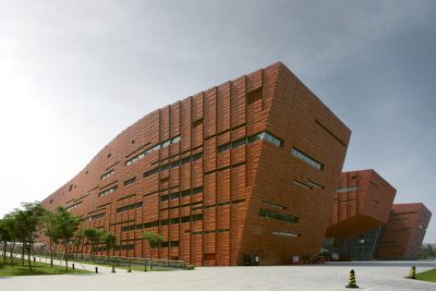 Tekst: <p>Le centre Sjakket répond à une fonction de pédagogie sociale adaptée à des jeunes de 11 à 17 ans en décrochage scolaire et à leurs parents. Il trouve place dans une ancienne fabrique de 1938, représentative de l’architecture industrielle danoise. Les architectes ont voulu conserver cette esthétique, trace du passé industriel du quartier. L’intervention contemporaine consiste dans le réaménagement du bâtiment, particulièrement des deux toitures cylindriques et le placement, quasi en apesanteur d’un volume rectangulaire déposé, comme en équilibre, sur ces voûtes. Les voûtes existantes sont reproduites et rénovées avec une couverture acier, subtilement percées de coupoles. La partie centrale, symboliquement et structurellement conçue comme un pont, réuni les voûtes et abrite les fonctions d’activités communes. La légèreté structurelle et visuelle a conduit au choix de l’acier. Le revêtement de façade, rouge intense, tout comme la forme parallélépipède simple rappelle les containers du port voisin. </p>