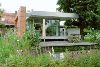 Tekst: <p>Dans un lotissement typique de maisons jumeleés à la typologie identique, il faut oser relever le défi si l’on cherche à donner à une habitation existante une plus-value certaine par l’adjonction d’une extension. Les habitants d’une maison unifamiliale semi-ouverte située à Schrijberg en ont fait le pari en optant résolument pour une annexe contemporaine dans une ossature en acier. Au lieu de prolonger l’habitation, on a choisi de mettre le projet au maximum en contraste avec le bâti existant, aussi bien dans la forme d’expression que dans l’utilisation des matériaux. Dans le même temps, on a cherché à établir une interaction entre l’extension et le jardin en intégrant de grandes verrières coulissantes dans la façade arrière. Les architectes ont délibérément choisi l’acier, tant pour les nombreuses possibilités qu’il offre pour la finition des détails de la menuiserie extérieure en acier peint par poudrage que pour l’élégance de la structure en acier et le fini de la façade. </p>