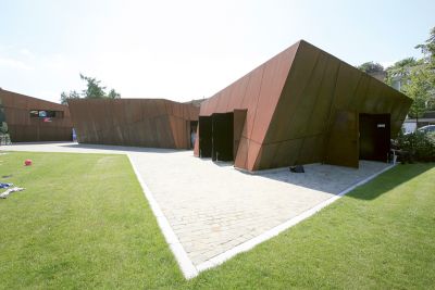 Les escaliers en béton ont été remplacés par une pente d’accès. La réception a été agrandie et entièrement vitrée, et également équipée d’un sas et d’une protection solaire fixe afin d’éviter toute surchauffe en été. Tous les éléments porteurs, ainsi que la surface de la pente d’accès, sont en acier. <br>