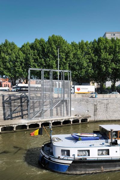 Tekst: <p>Le projet d’aménagement a tenu compte de deux éléments : une intégration urbanistique poussée et l’adaptation du site aux nouvelles normes en matière de sécurité, ce que signifie que l’ensemble devra être grillagé. L’auteur de projet a voulu que la contrainte technique de cette grille devienne un effet esthétique. <br>De jour, le matériau est presque transparent; de nuit, il est éclairé par un système rasant au sol de LEDs afin que la présence nocturne de l’écluse soit une réalité, créant une interface entre la ville et le canal. L’autorité du Port a profité de cette occasion pour remettre à jour les bâtiments existants : isolation, remplacement des toitures, placement d’un nouvel habillage, tout en respectant la volumétrie d’origine ayant sa propre ‘histoire’. L’acier a été choisi comme matériau des éléments structurants du projet pour donner à l’ensemble un aspect plus industriel. Une composante essentielle du projet est le tissu métallique en inox.