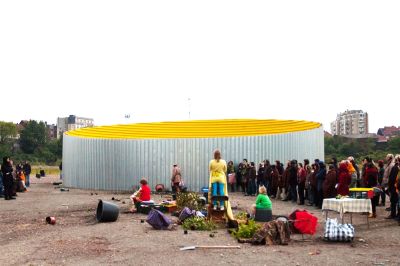 Tekst: <p>Dans le Pavillon belge de la Biennale de Venise 2008, la structure existante a été encadrée par un mur de 7 m de haut et 30 m de long, et ainsi isolée du contexte dominant de la biennale architecturale.<br>