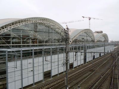 Tekst: <p>La nécessité d’ajouter une deuxième entrée à la gare d’Anvers-Centrale est apparue lors de la réalisation du tunnel sous la gare. Ce nouveau bâtiment est constitué en surface d’une structure en acier jaillissant littéralement du sous-sol. La structure est revêtue de verre et de grillages en acier, de manière à laisser la lumière du jour y pénétrer en abondance. La structure en acier suit une grille d’axes perpendiculaires aux voies de chemin de fer ; à son périmètre, la structure est parallèle aux constructions citadines environnantes. Par ailleurs, le toit et la façade latérale ont été conçus comme un plan plié autour d’un axe également parallèle au bâti environnant. La confluence des deux systèmes d’axes apporte à la structure en acier une dynamique résolue. Il n’était pas imaginable d’utiliser d’autres matériaux pour cette intervention contemporaine, alors que le hall de la gare, érigé il y a 110 ans, est lui-même complètement fait d’acier.