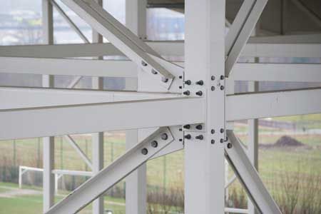 - Momentvaste verbindingen in raamwerken, uitgevoerd met geboute kopplaten of volledig gelast, al of niet versterkt met schotten of consoles.