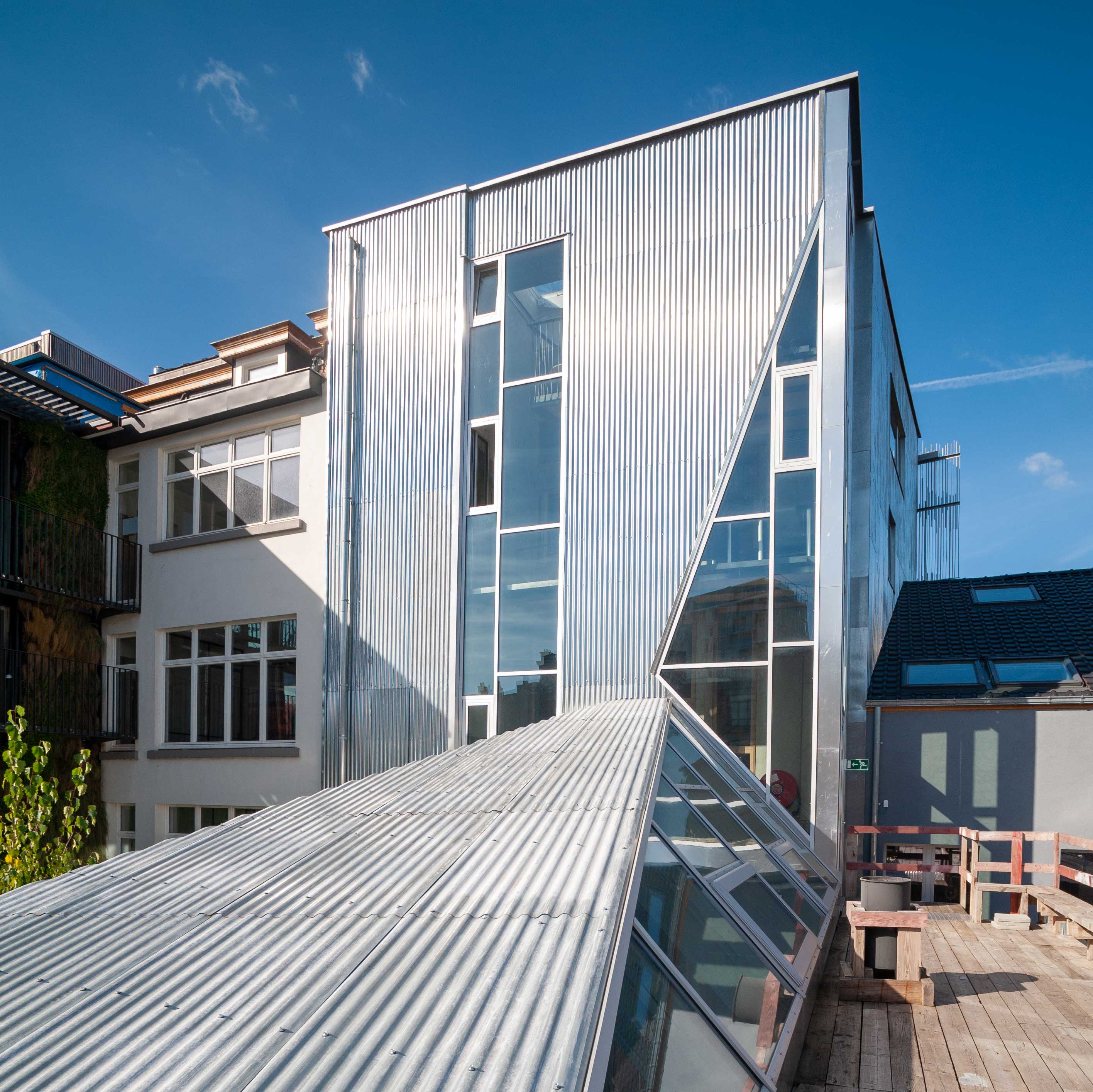 Het Centre national de coopération au développement, de Belgische koepelorganisatie voor internationale solidariteit, presenteerde onlangs zijn gerenoveerde historische hoofdkantoor, dat in een nieuw kleedje werd gestopt door HONHON architectures en Atelier 20, inclusief de realisatie van een imposant atrium met glazen dak. Staal is de rode draad in bijna alle architecturale ingrepen, van de verhoogde gevel aan de straatkant tot de nieuwe achtergevel, de glazen koepel en een fantastische circulatievoorziening met trappen en passerelles die leven en werk in het neoklassieke gebouw opnieuw definiëren.