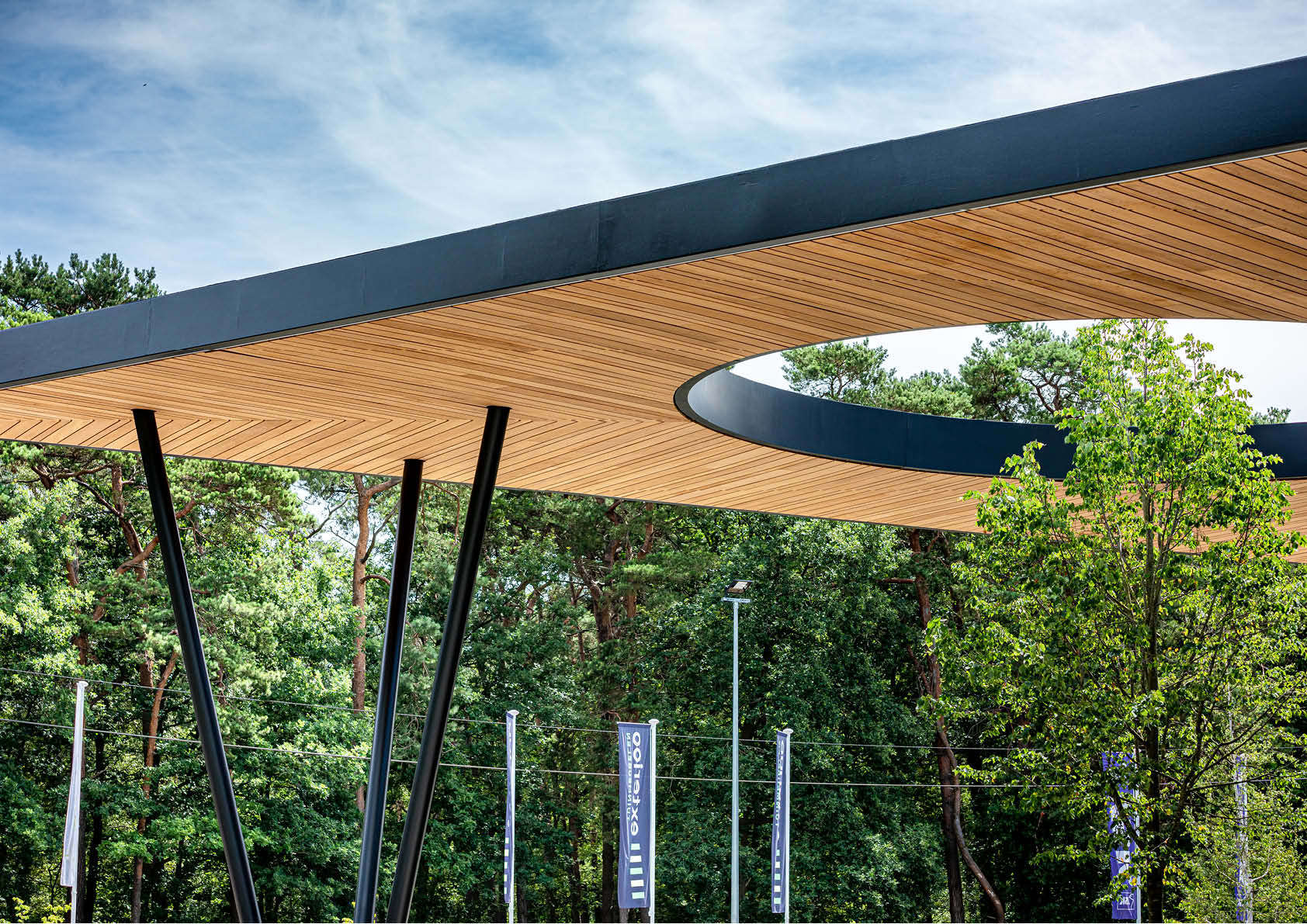 De voormalige site van een meubelbedrijf in Zoersel werd omgetoverd tot een retailpark met acht winkels. Om het evenwicht tussen bebouwde en natuurlijke omgeving te behouden, werd gekozen voor een eyecatcher in de vorm van een indrukwekkende stalen luifel van 17 meter. In de luifel is een cirkelvormige opening voorzien waarin een boom van acht meter groeit.