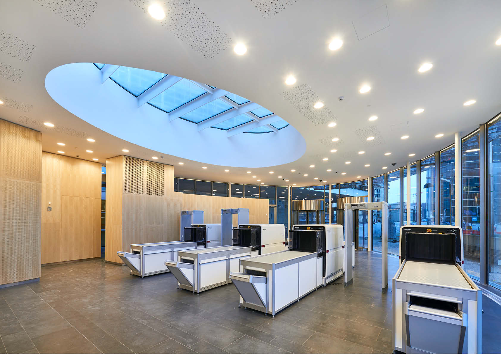 Voor de Europese Commissie in Brussel is aan de voet van het Berlaymontgebouw een ellipsvormig paviljoen opgetrokken om bezoekers te ontvangen en het terrein beter te beveiligen.