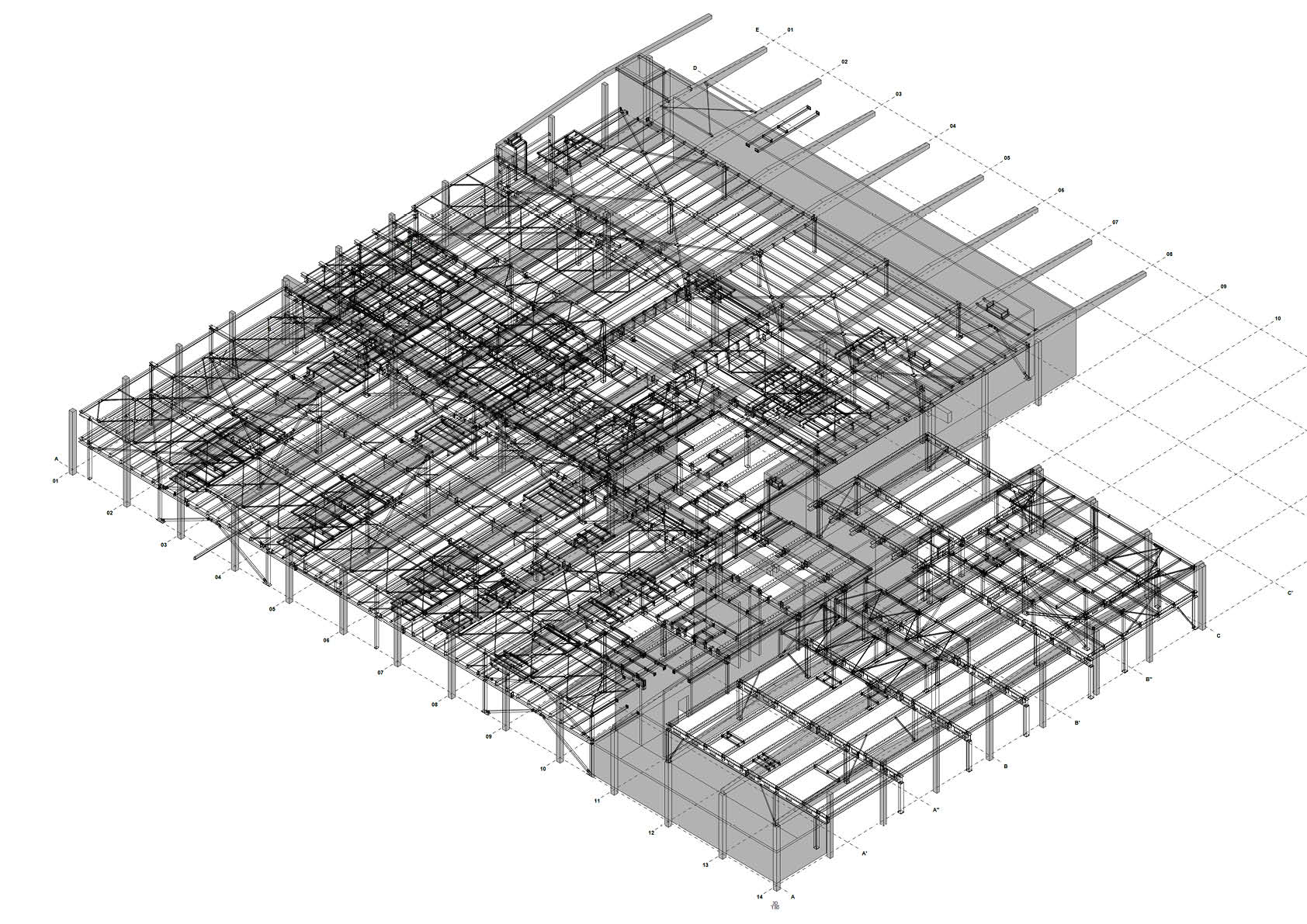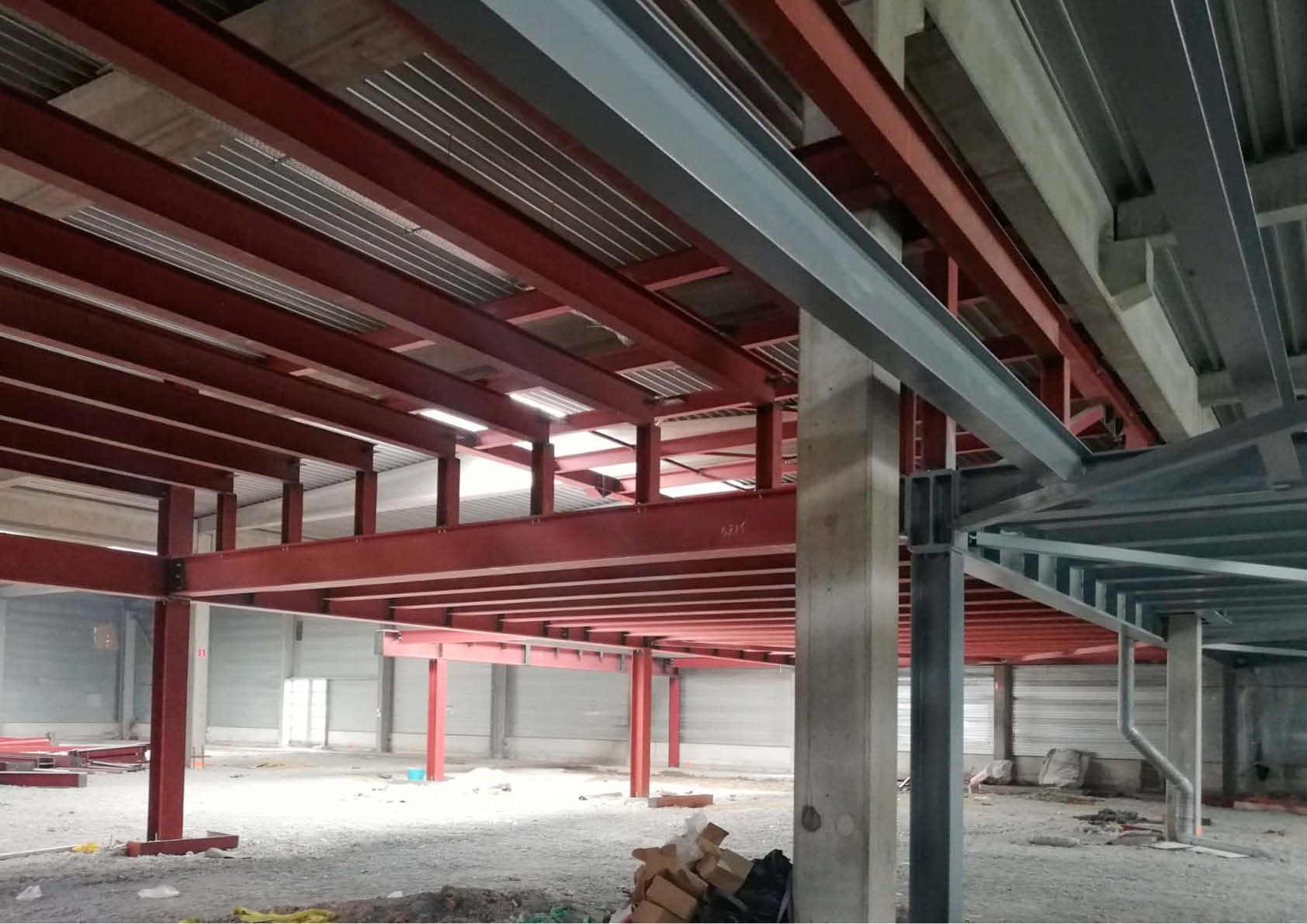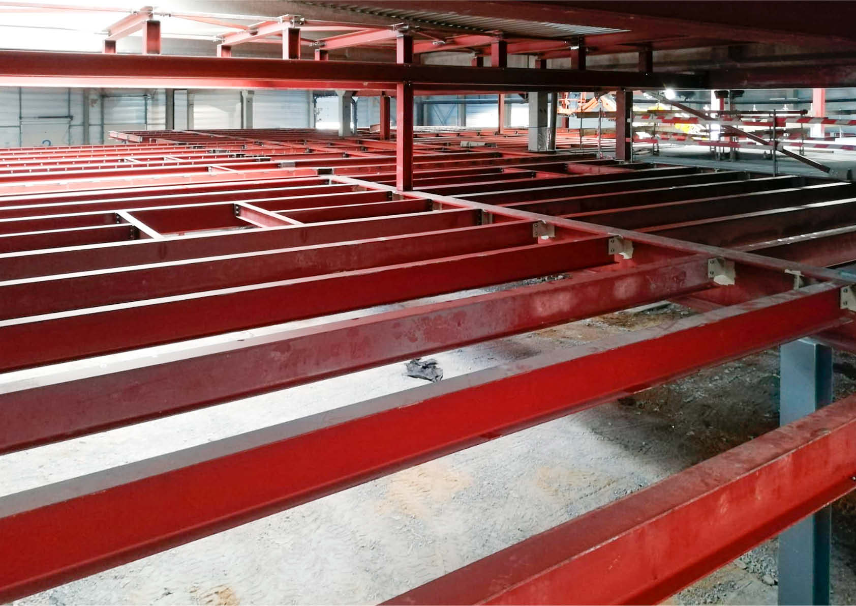 Alvorens de werken aan te vatten, werd een volledig nieuwe onafhankelijke fundering voorzien, uitgevoerd door middel van gevulde stalen voerbuizen. Gezien de constructie binnen het bestaande gebouw moesten de lengte en het maximale gewicht van de stalen liggers beperkt blijven. In totaal werd maar liefst 565 ton staal voorzien voor de verdiepingsvloeren, inclusief een volledige brandwerende behandeling (meer dan 10.500 m² brandwerend schilderwerk). Op de staalconstructie zijn 2700 m² roostervloer en 1.250 m² zwaluwstaartvloeren (Cofrastra) geplaatst.