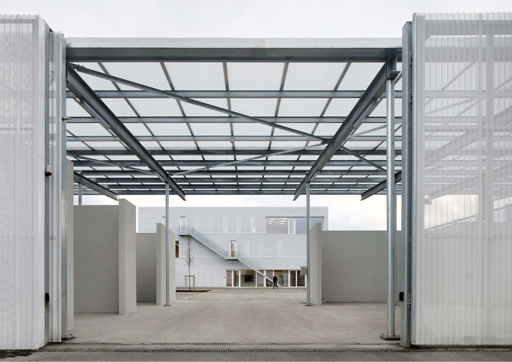Dit minimalistische complex, dat is opgedeeld in drie entiteiten, herbergt het administratief en technisch centrum van de sociale huisvestingsmaatschappij van de regio Bergen. Een ‘poreuze behuizing’ waarborgt de verbinding tussen alle onderdelen van het project en maakt er één geheel van. De sobere, monochrome gebouwen zijn uitgerust met een gemengde draagstructuur in beton en staal en een stalen dak met een totale oppervlakte van 1350 m².